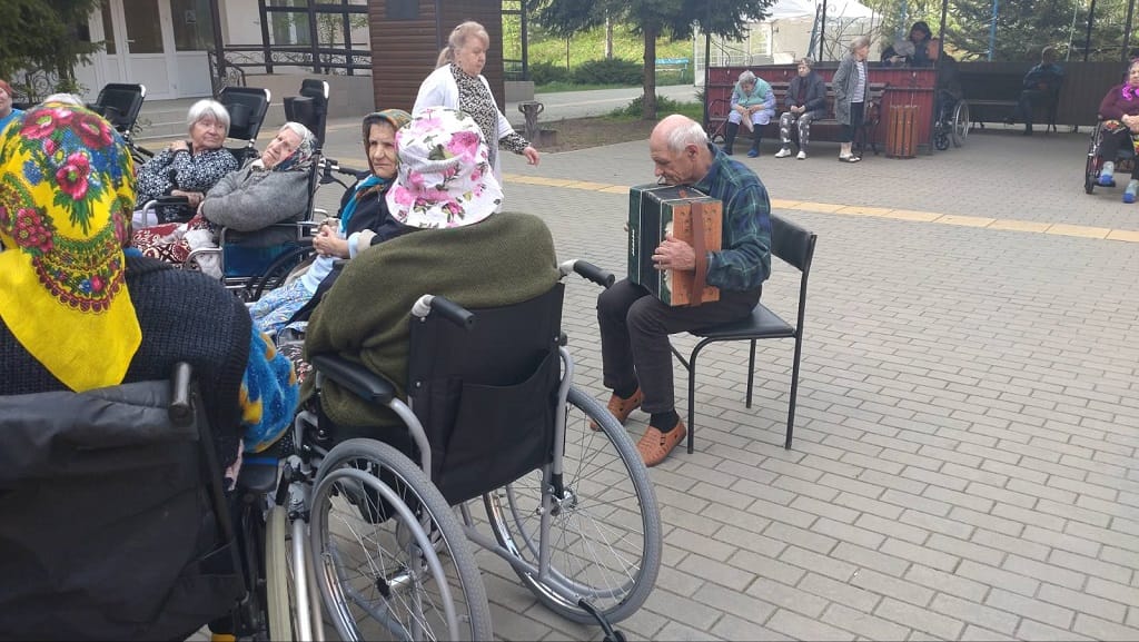 Кожного дня у хорошу погоду у пансіонаті організовуються прогулянки для маломобільних підопічних.
