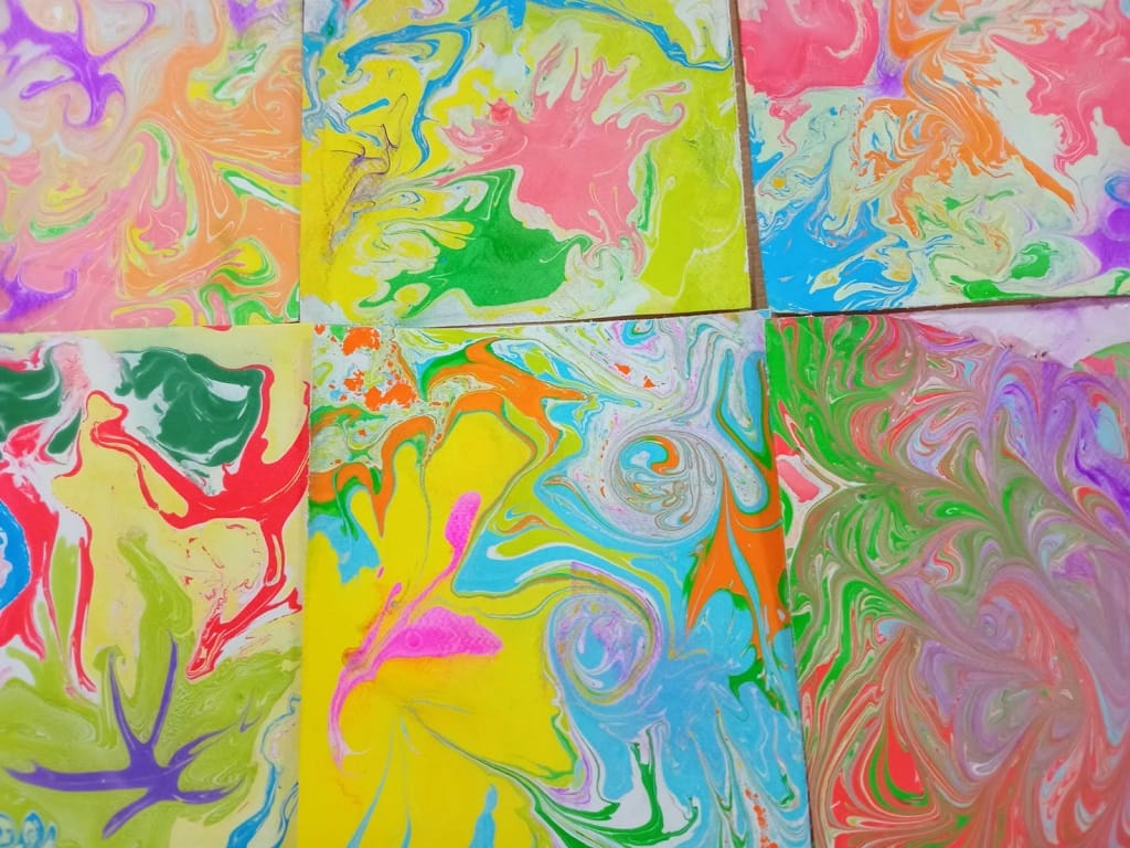 Вони провели з підопічними терапевтичні заняття на зниження емоційної напруги за допомогою малювання на воді в техніці Ебру.